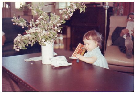 My baby is growing up! She's not a baby anymore, but I will always think of her as one. She's the younger of my two daughters and has two grown sons of her own, but she's still my baby. This picture was taken at my folk's house where I lived before I went to college - and the man in the chair is Cindy's great grandfather - my mother's father. Cindy looks so sweet in that picture - I love it!